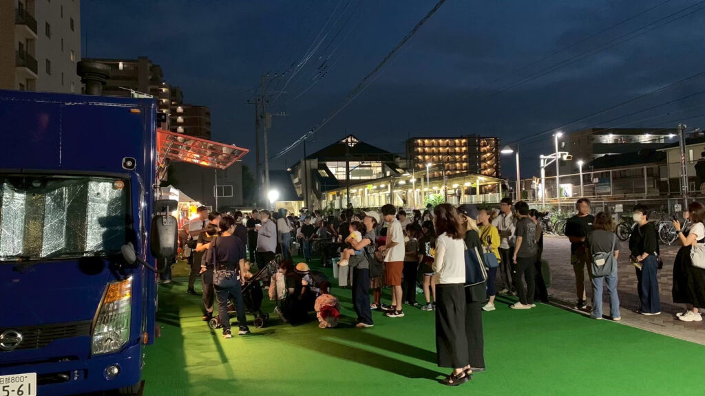 平日の夕方に帰宅途中の皆さんが駅近で立ち寄れる「外でちょい飲み会」を開催しました。